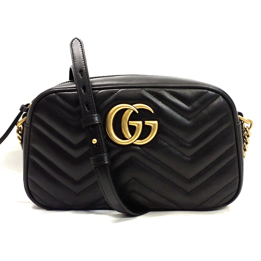 『グッチ GGマーモント スモール カメラバッグ 447632 本革 ブラック/ゴールド金具 ショルダーバッグ キルティング』をお買取させていただきました。